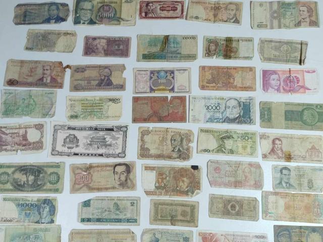 На Вашето внимание световни банкноти в ниско качество. Банкнотите са подходящи за стартираща колекция и за начинаещи, които да се упражняват и да трупат практически умения. Да ги изследват и изучават. Подходящи са и за попълване на дупки във вече съществуващи колекции докато си намерите по-добър екземпляр. Състоянието на банкнотите е видно от снимката - получавате точно това, което виждате. При закопуване на повече от един лот банкноти получавате и 5бр. Югославски банкноти в много добро състояние + подарък Китайска банкнота нециркулирала от 50 000 000 долара пари за онзи свят.