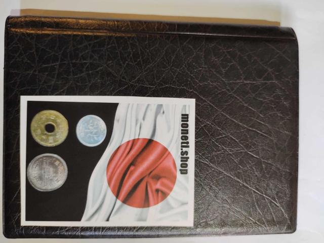 Монети: Japan 1, 5 и 10 Yen са грижливо подредени в чисто нов класьор с декорирана корица.