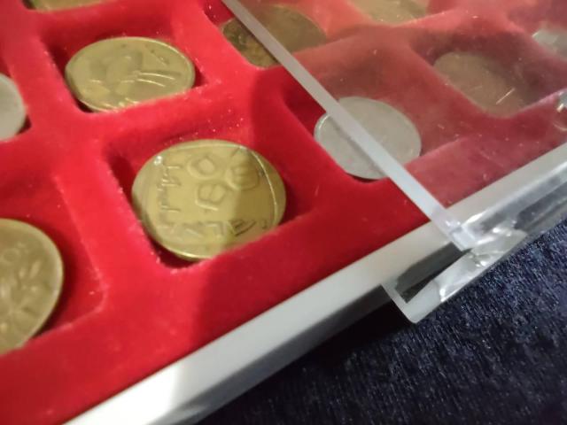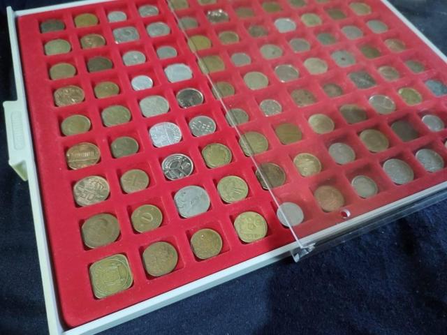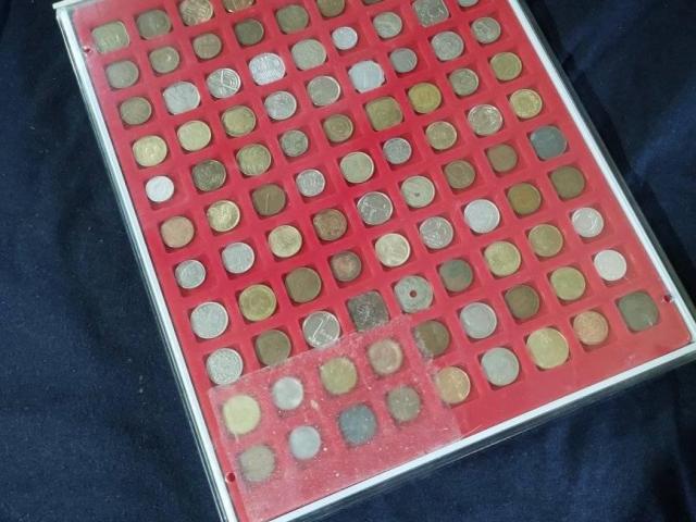 Колекция от 99бр. световни монети подредени в кутия с защитно плексигласово покритие