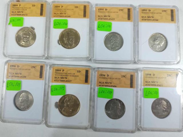 На вашето внимание предлагаме колекция от 8 монети SGS MS70