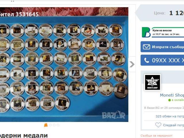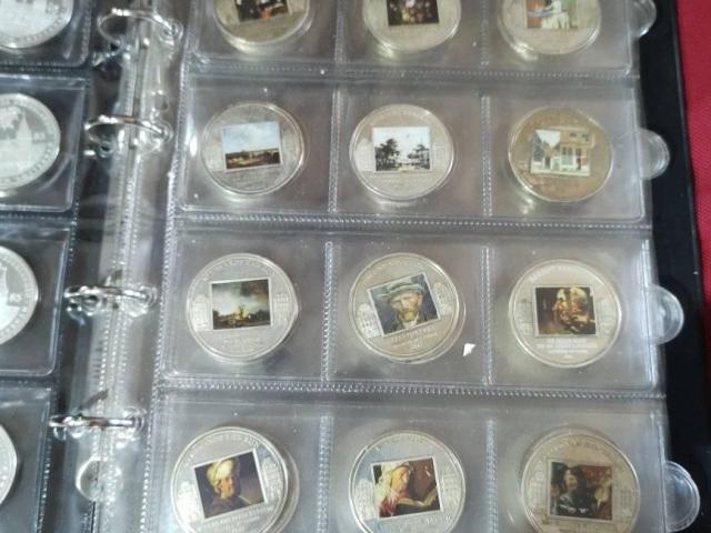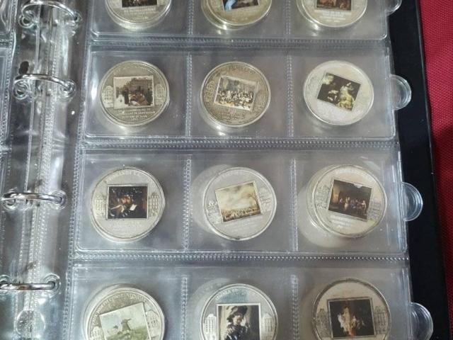На вашето внимание предлагаме една колекция от 56 бр. модерни медали от ново поколение така наречените 2G заради цветните картини на тях. Колекцията е масивна и внушителна с теглото си тя тежи над 1650гр. Всяка монета е с тегло 28гр.и 40мм диаметър. На тях са изобразени различни творби на различни художници издадени от Rijksmuseum Amsterdam. Не са били в циркулация, но имат следи от транспортирането и допирът...