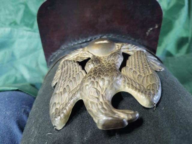 Много стара шапка от естествена кожа и метална кокарда