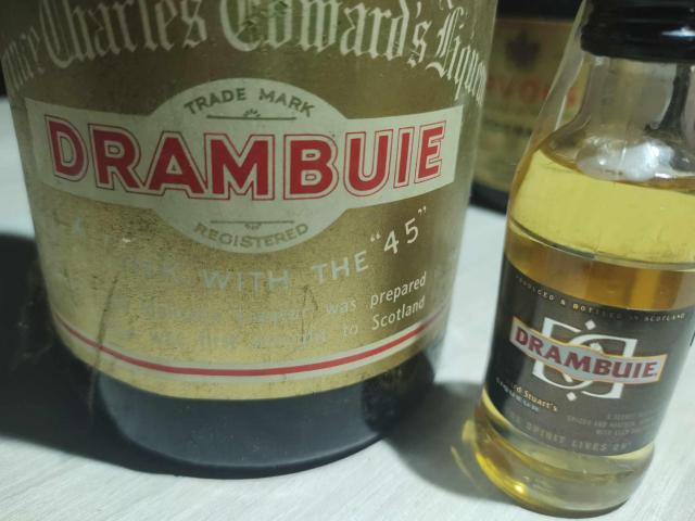 Това е бутилка съхранила духът и аромати на Ирландският ликьор Drambuie, направен по древна рецепта, датираща от 18-ти век, собственост на принц Чарлз Едуард Стюарт, и е разпространен за първи път на търговски пазари през 1909 г. За разлика от много други ликьори от уиски, Drambuie все още се произвежда. И затова сме добавили едно малко шишенце от съвременният вкус ценителите да могат да сравнят старото и новото и да дебатират разликите.