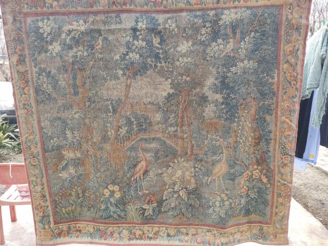 Огромен гоблен 145/155см цена 500лв. На Вашето внимание внушителен по размери и мотиви тъкан гоблен от средата на миналия век. Гобленът е изработен във Викториански стил като сюжетът е пейзаж на замък с градини и растения и животни, състояние на цветовете видно от снимките. Не е проверяван кой е замъкът и по коя фамилна поръчка е произведен. Най-вероятно единствен като мотив и изработка, съдейки п...