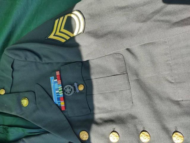 В комплекта влиза Сако и Шапка и принадлежните атрибути - кокарда,пагони и отличителни знаци, медали и значки.