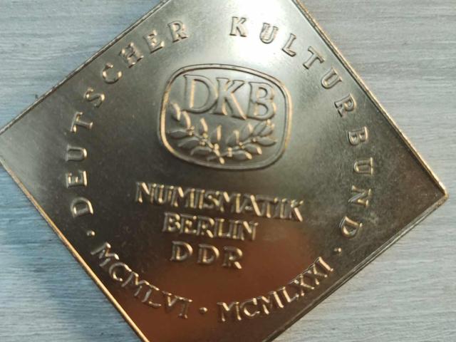 Медал на ГДР – плакет – ДКБ Германска културна асоциация - Нумизматика Берлин Размери на медала 5 х 5 см - Тегло на медала 63,4 гр.