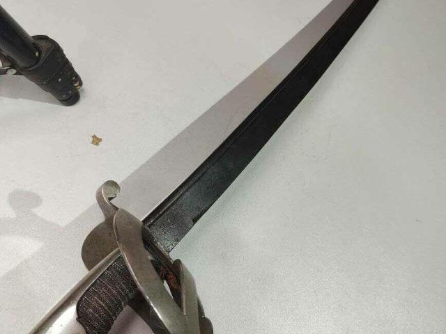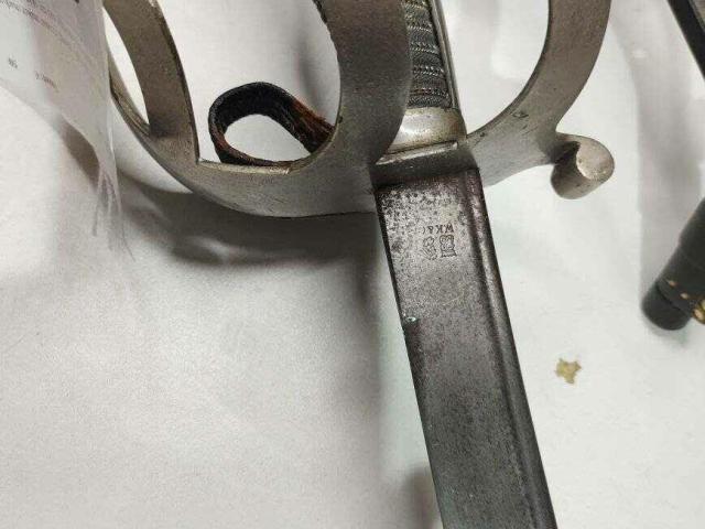 Прусия, Кавалерийски меч модел 1852 г., производител на рикасо с надпис „W.K&C.“, с кожен пръстен на палеца и дръжка от лъчева кожа.