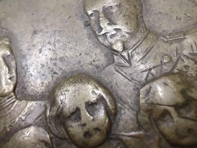 На вашето внимание предлагаме реплика на апликация от орнамент на римски легионерски стол. Произвдена и патинирана преди 20години. Не е тиражирана и е направена по технологията и методиките в античен стил. Идеална е за украса и подарък за колекции или модел за реставратори. Излъчването и стилът са спицифични за 1-2 век. Но е стара изработка от повече от 20г....