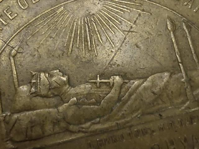 Уникален Медальон с Рицар тамплиер, който Язди надясно с вдигнат меч борещ се срещу Сарацините. Един от девизите на кръстоносците, Signum Crucis, също е украсявал монети, заедно с ръчния кръст, например на монетата на Маргарита от Константинопол. Изображения от 13-ти век на кръстоносец,, който взема кръста и атакува сарацин. Рицар на кон, яздещ НАДЯСНО, с из...
