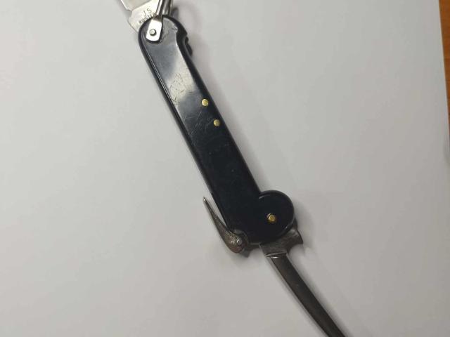 Маркирана: JS/ ROSTFREL Състояние чисто ново. Тя е военна с много здрава и качествена изработка състояща се от ножка, шило,и отварачка. Има закопчалка на острието за безопасност и халка за връв. Много красива колекционерска и практична вещ. Честно казано най-коравата ножка, която съм виждал през животът си. Направена да ви служи вечно. В разпънато състояние е 28см. В сгънато състояние 11см. Цена 100л...