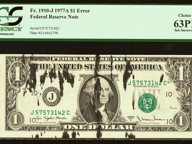 Банкнота уникат. Петна от черно мастило Грешка PCGS 63PPQ