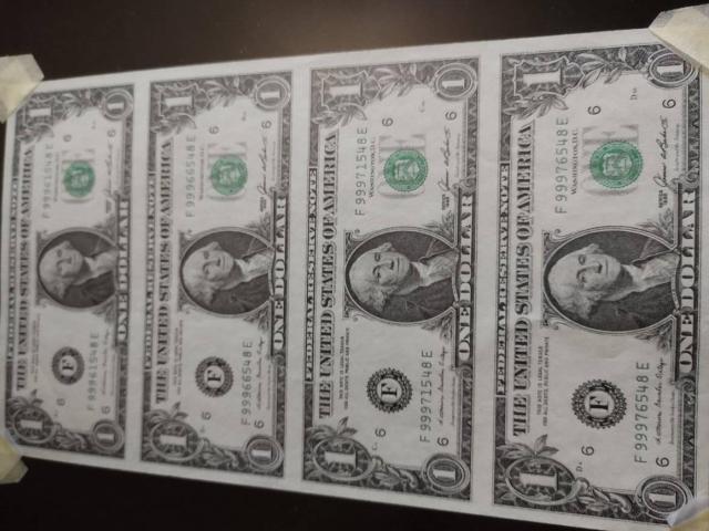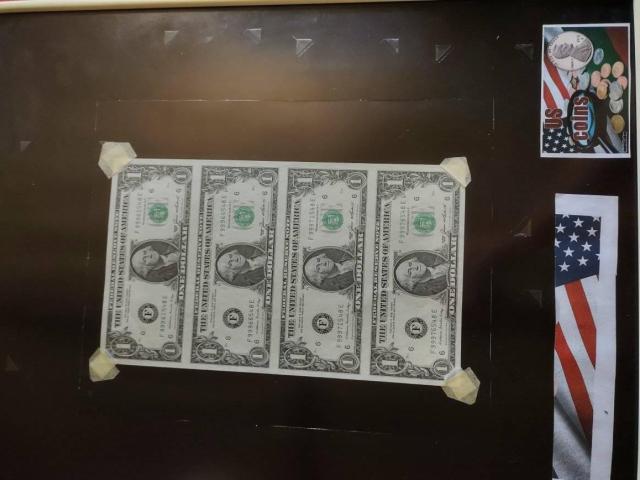 Банкнотите могат да се класифицират като ERROR заради кривото подрязване. Това е рядко срещан лот от банкноти от 1 долара.с поредни номера Паното е от здрав алуминиев профил със стъкло на гърба с фазер. Паното е с размер 47см на 71см. Рядко се срещат такива листове в пано – обикновено се копуват от спекуланти който разрязват банкнотите с гилотина и после след като ги сертификатът по-отделно като б...