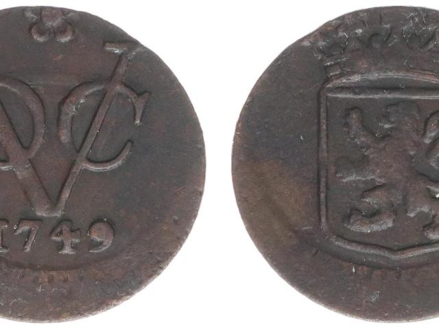 ERROR описана като: ½ Duit 1749 Error (Passon 12.3 / Scho. 351) - misstrike 20% off-center - VF/XF